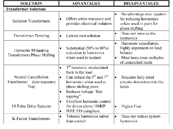 Solution Summary Tables Type 2 – Comparison of Solution Options (and Effectiveness) by CORRECTIVE EQUIPMENT • • Shunt/Parallel Filters Series Filters/Reactors Transformer Solutions Other Table 3 – Comparison of Solution Options by LOAD TYPE • • • Drives, Rectifiers, 3 -Phase UPS Computers Fluorescent Lighting Welding/Arcing Loads System Solutions