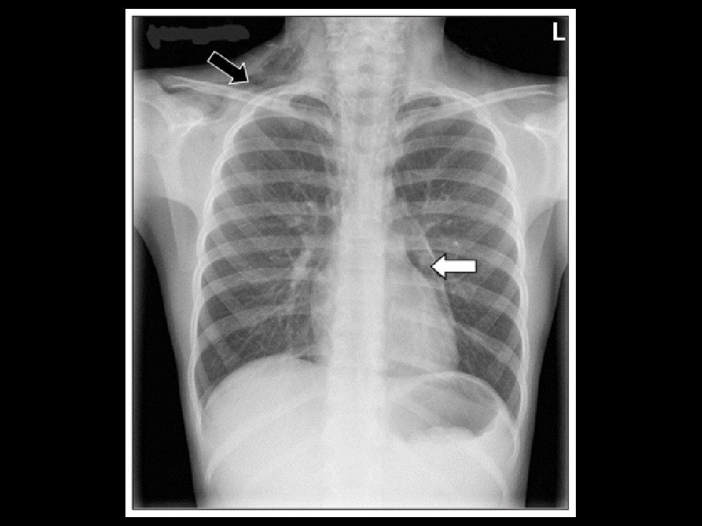 Esophageal Rupture • Boerhaave’s syndrome. • Severe CP, usually following forceful vomiting. • Often associated with subcutaneous crepitus. • Think of this diagnosis in alcoholics or with history of recent procedures.