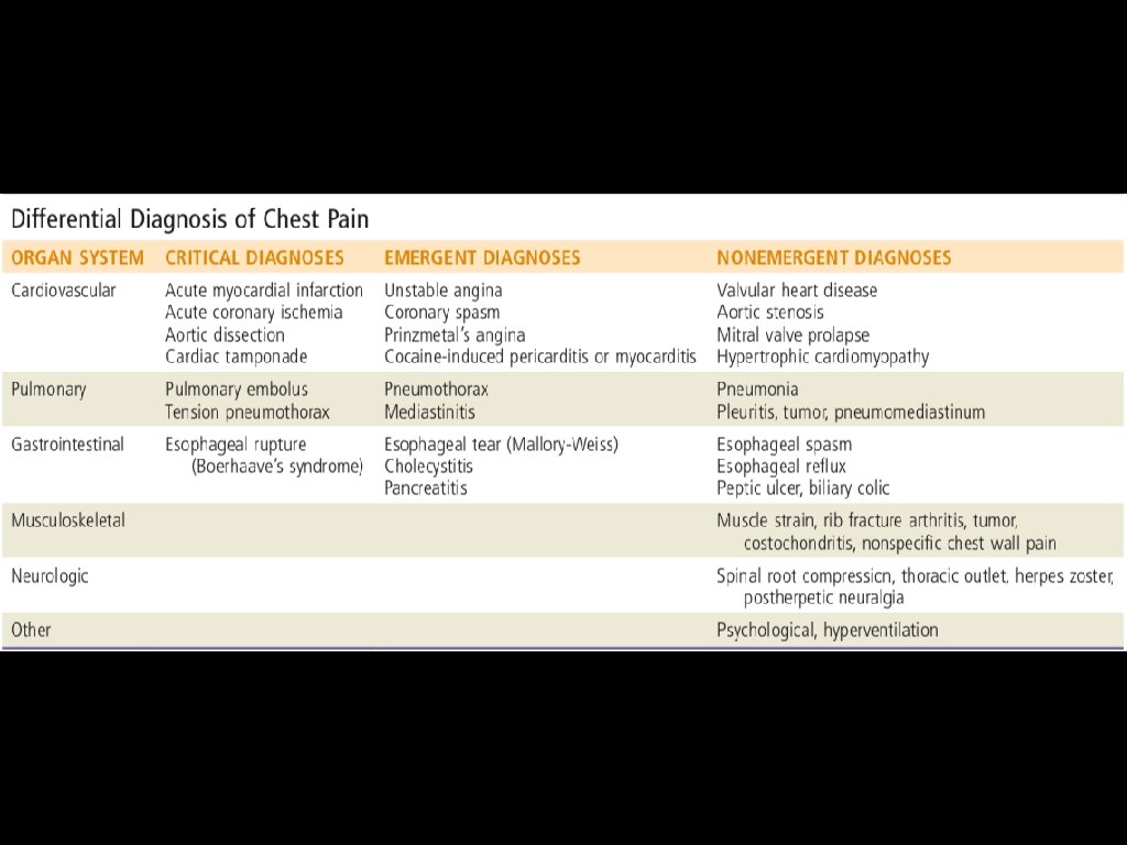 • Duration. • aggravation factors. • associated symptoms ( diaphoresis). • PMHx • Risk Factors.