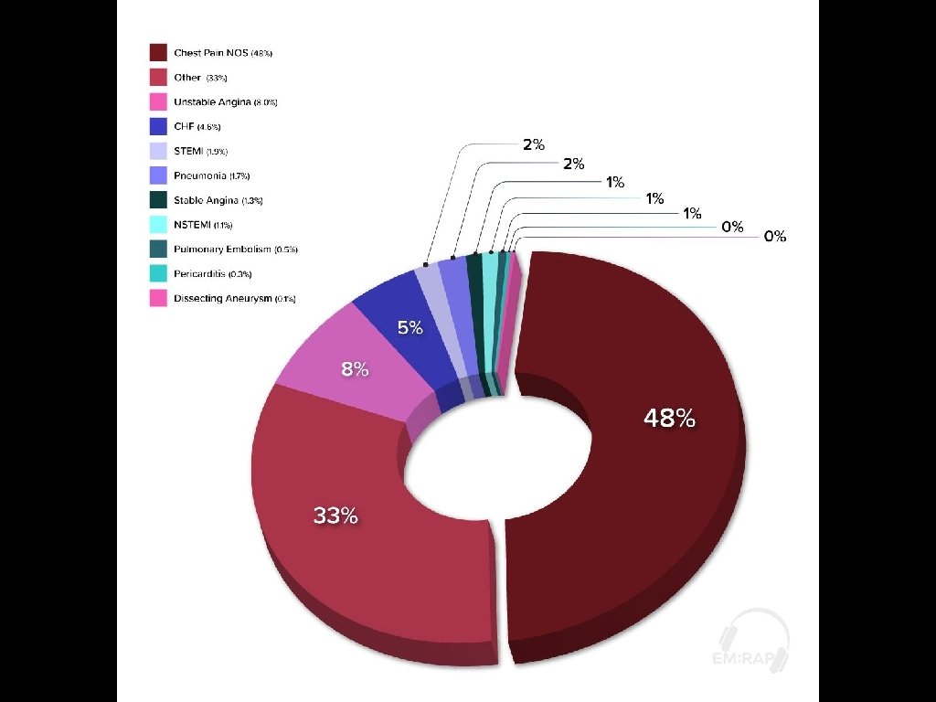 • Chest pain is one of the highest risk chief complaints you will see in the Emergency Department (ED). • Approximately 6 million patients visit the emergency department (ED) each year with complaints of chest pain, constituting 9% of all patients seen in ED in USA.