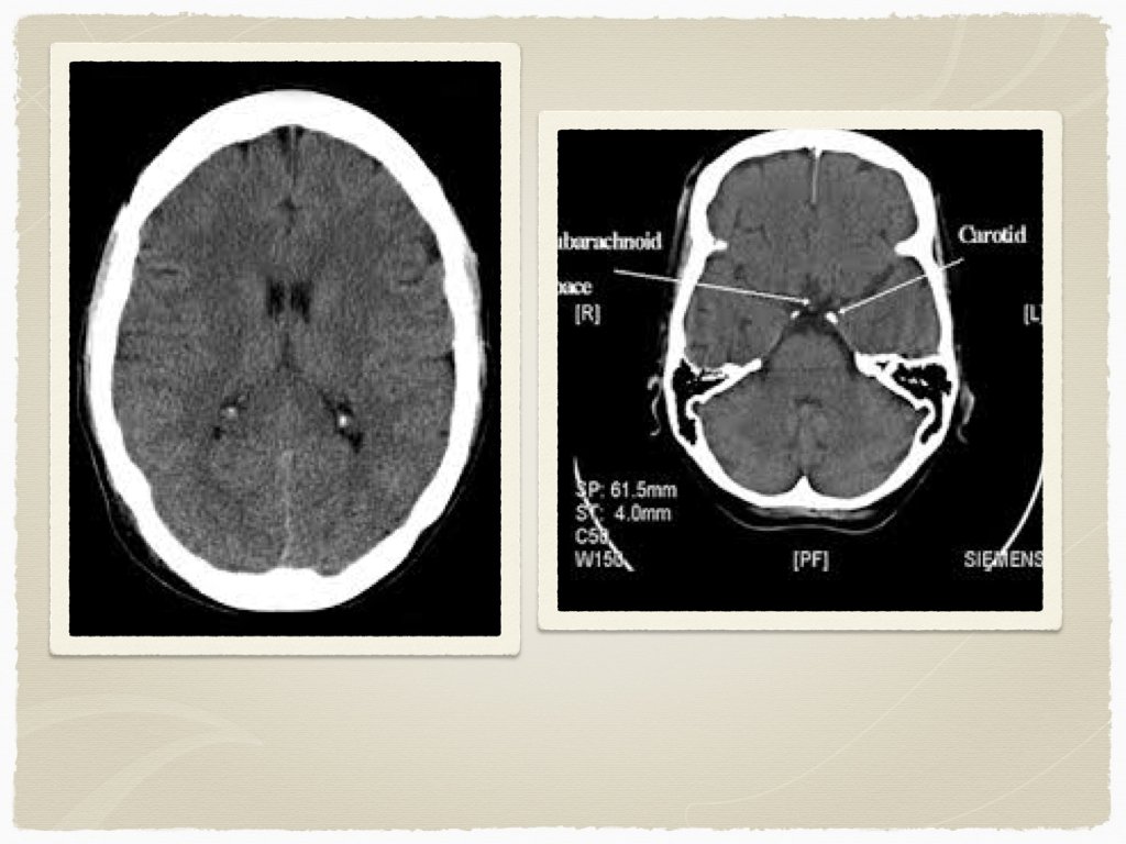 Diagnostics CT is the initial test of choice In sentinel bleed for aneurysmal SAH, can be negative LP to follow if suspicion Lab work: INR Troponin ECG