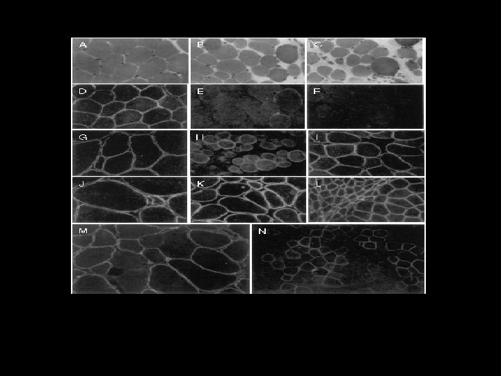 • Type 1 fibers (slow-twitch, fatigue-resistant, oxidative metabolism) stain lightly at alkaline and darkly at acidic p. H levels. • Type 2 fibers (fast- twitch, fatigue-prone, glycolytic metabolism) stain darkly at alkaline and lightly at acidic p. H levels. • Normally, a random distribution of the two fiber types occurs, and generally twice as many type 2 as type 1 fibers are identified.