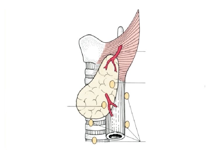 Thyroid carcinoma • Follicular cancer (10%) and Hürthle cell cancer – Middle age – Blood spread – Total thyroidectomy if invasive cancer, metastatic cancer or patient preference • Central neck dissection if lymph node positive • Lateral neck dissection if clinically involved – Completion thyroidectomy if invasive cancer – RAI – Surveillance with TSH, Tg, antithyroglobulin Ab and US National Comprehensive Cancer Network Clinical Practice Guidelines in Oncology: Thyroid Carcinoma Version 2. 2013