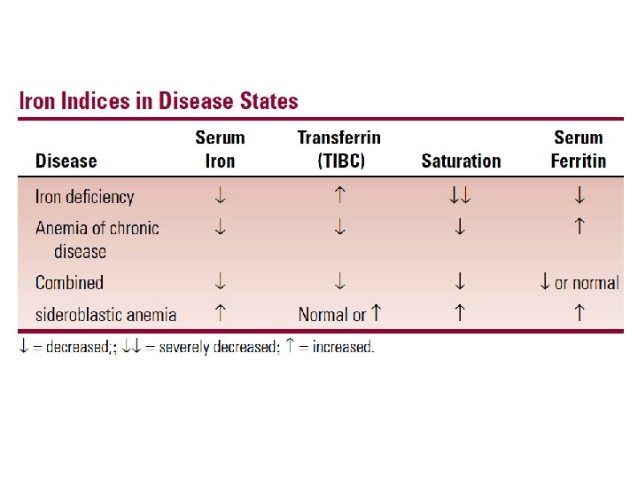 Red blood cell indices • MCHC • Mean corpuscular hemoglobin concentration (MCHC) is the average hemoglobin concentration per RBC. • It is calculated as – (MCHC in grams [g]/d. L = hemoglobin [in g/d. L] X 100 ÷ HCT [in percent]). • Very low MCHC values are typical of iron deficiency anemia, and very high MCHC values typically reflect spherocytosis or RBC agglutination. • Examination of the peripheral blood smear is helpful in distinguishing these findings.