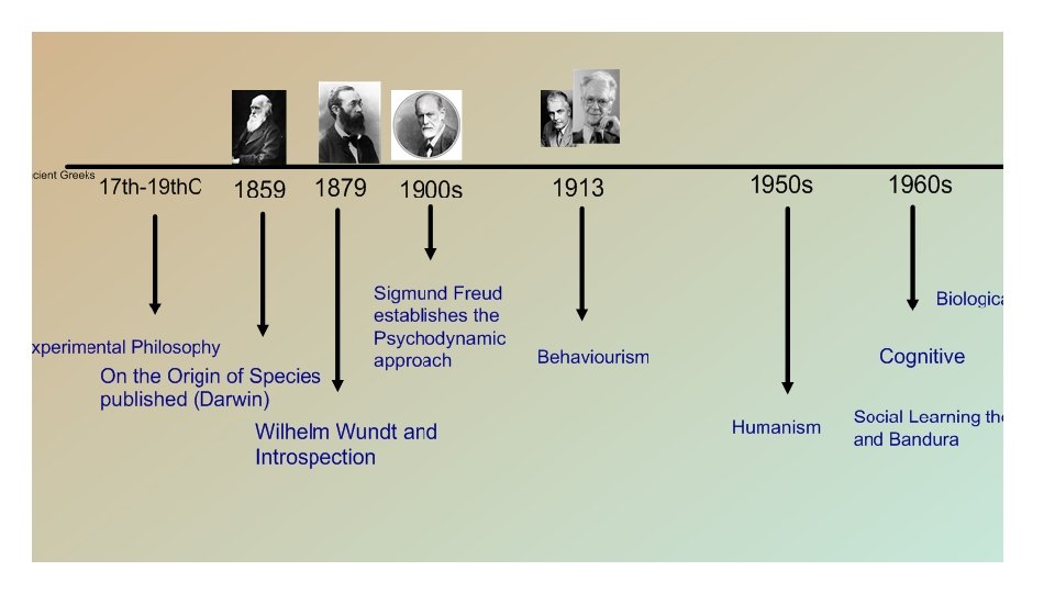 Emergence of psychology as a science 1900: Behaviourists: rejected Introspection 1930’s: Behaviourist scientific approach dominated psychology (e. g. Skinner) 1950’s: Cognitive approach: used scientific procedures to make inferences about mental processes 1990’s: Biological approach: brain scanning techniques