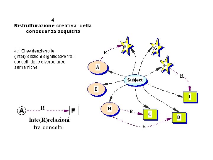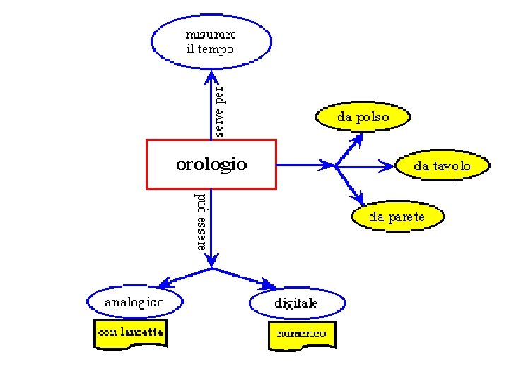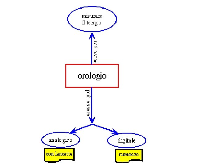 Costruzione mappe concettuali • Partenza da un concetto chiave • Elencazione di concetti (più o meno) pertinenti sulla base della nostra conoscenza • Raggruppamento di concetti sulla base di “vicinanza” di significato – prossimità – similarità • Identificazione di aree “semantiche” (domini cognitivi