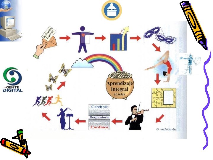 Metas a lograr (Continuación) • • • • Estimular el desarrollo del pensamiento crítico y creativo de los alumnos. Estimular el desarrollo de los sentimientos en los alumnos. Enseñar a visualizar lo aprendido empleando diferentes tipos de organizadores de ideas: mapas mentales y conceptuales. Crear condiciones para que los alumnos aprendan a procesar información. Desarrollar en los alumnos las habilidades intelectuales para procesar información. Mediar entre el alumno y el contenido de enseñanza. Sistematizar su práctica docente: procesos y resultados. Establecer una comunicación horizontal y asertiva con los alumnos en clase, los colegas de la institución y padres de familia. Identificar en aproximaciones sucesivas las potencialidades del desarrollo de sus alumnos. Emplear diferentes estrategias didácticas como herramienta de mediación en los distintos momentos de una clase. Planear la lección según los momentos didácticos básicos del Aprendizaje Cooperativo, acelerado, integral e innovador. Aplicar una evaluación dinámica del aprendizaje de sus alumnos. Brindar el manejo de las TICs.