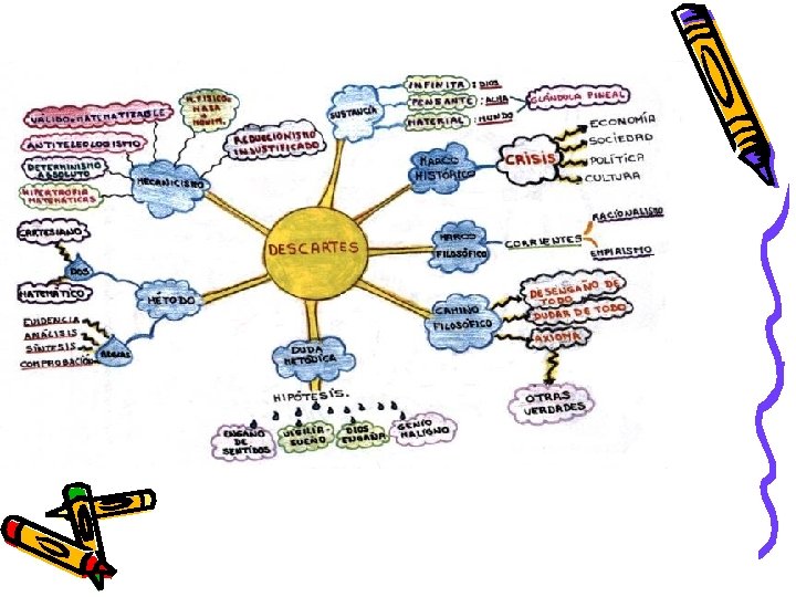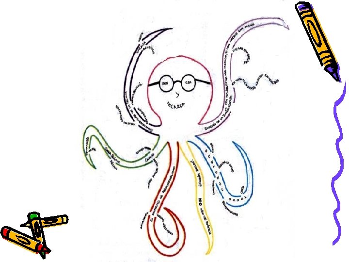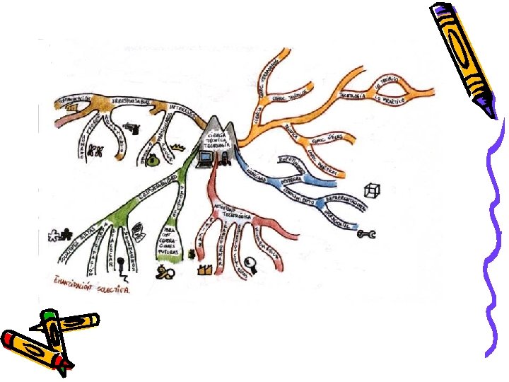 Origen de los mapas • Los mapas mentales son una técnica que fue desarrollada al principio de la década de los 70 por Tony Buzan, un académico, periodista y escritor británico. Su fundamento deriva de investigación sobre memoria, inteligencia, creatividad y del funcionamiento general del cerebro humano. • Esta investigación sugiere que el uso de las funciones cerebrales localizadas predominantemente en el hemisferio derecho del cerebro (tales como la identificación de los colores, las dimensiones y las formas) además de las funciones localizadas principalmente en el hemisferio izquierdo (relacionadas con el análisis, así como el manejo de palabras, números, listas y asociaciones lineales) puede mejorar bastante la memoria y el pensamiento creativo.