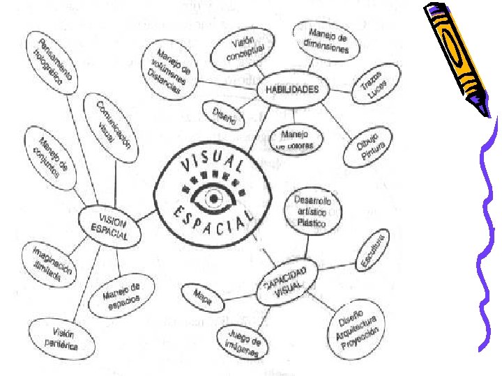 Tipos • 5. Inteligencia visual-espacial. Está en los niños que estudian mejor con gráficos, esquemas y cuadros. Les gusta hacer mapas conceptuales y mentales. Entienden muy bien planos y croquis. La base sensorial de esta inteligencia es el sentido de la vista, así como la habilidad de formar imágenes mentales. • 6. Inteligencia interpersonal. La tienen los niños que disfrutan trabajando en grupo, entienden al compañero y son convincentes en sus negociaciones con pares y mayores. Está relacionada con la capacidad de comprensión hacia los demás, como notar las diferencias entre personas, entender sus estados de ánimo, su temperamento e intenciones.