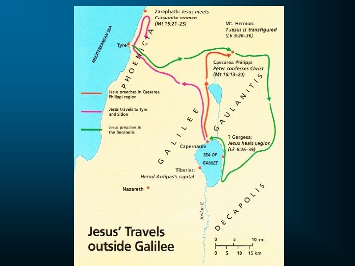 The Life of Jesus VII. The Year of Opposition (c. 29 -30 AD) 1. Death of John the Baptist (Machaerus) – Mt. 14: 1 -12; Mk. 6: 14 -29; Lk. 9: 7 -9 2. In Galilee A. Jesus feeds the 5000 (Bethsaida) – Mt. 14: 13 -21; Mk. 6: 30 -44; Lk. 9: 10 -17; Jn. 6: 1 -14 B. Jesus walks on water (Gennesaret) – Mt. 14: 22 -33; Mk. 6: 45 -52; Jn. 6: 16 -21 3. Ministry to the north and east A. B. C. D. E. F. Jesus travels to Tyre and Sidon – Mt. 15: 21 -28; Mk. 7: 24 -30 Jesus feeds the 4000 (Sea of Galilee) – Mt. 15: 32 -39; Mk. 8: 1 -9 Peter’s confession (Caesarea Philippi) – Mt. 16: 13 -20; Mk. 8: 27 -30; Lk. 9: 18 -21 Jesus predicts his death (Caesarea Philippi) – Mt. 16: 21 -26; Mk. 8: 31 -37; Lk. 9: 22 -25 The Transfiguration (Mt. Hermon? ) – Mt. 17: 1 -13; Mk. 9: 2 -13; Lk. 9: 28 -36 Jesus pays the Temple Tax (Capernaum) – Matthew 17: 24 -27 4. Ministry in Judea 5. A. Jesus attends Feast of Tabernacles (Oct. , AD 29) – John 7: 11 -52 B. Jesus heals the man born blind – John 9: 1 -41 C. Jesus visits Mary and Martha (Bethany) – Luke 10: 38 -42 Ministry in Perea – Luke 17: 11 A. Jesus raises Lazarus (Bethany) – John 11: 1 -44 B. Jesus bless the little children (Perea) – Mt. 19: 13 -15; Mk. 10: 13 -16; Lk. 18: 15 -17 C. The rich young ruler (Perea) – Mt. 19: 16 -30; Mk. 10: 17 -31; Lk. 18: 18 -30 D. Jesus again predicts death (Perea) – Mt. 20: 17 -19; Mk. 10: 32 -42; Lk. 18: 31 -34 E. Jesus heals blind Bartimaeus (Jericho) – Mt. 20: 29 -34; Mk. 10: 46 -52; Lk. 18: 35 -43 F. Jesus and Zacchaeus (Jericho) – Luke 19: 1 -10 G. Jesus returns to visit Mary and Martha (Bethany) – John 11: 55 -12: 1