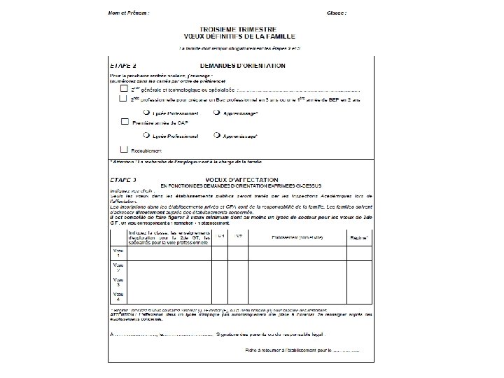 FICHE verte de LIAISON A compléter soigneusement et à rendre au professeur principal dans les délais Formuler des vœux de lycées publics Pour le privé ou les CFA, c’est aux familles de faire les démarches