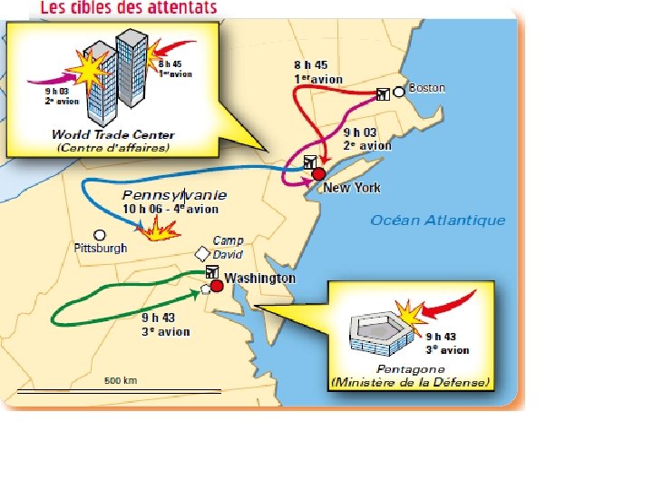 Les attentats du 11 septembre 2001 sont quatre attentats-suicides perpétrés le même jour aux États-Unis, en moins de deux heures, entre 8 h 14 et 10 h 3, par des membres du réseau djihadiste Al. Qaïda, visant des bâtiments symboliques du nord-est du pays et faisant 2 977 morts C’est la 1ère fois dans l’histoire des USA qu’ils ont été atteints, attaqués sur leur sol