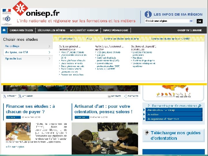 Calendrier de l’orientation 1 er Trimestre Conseil de classe : bilan des résultats du 1 er trimestre Au niveau de l'orientation : début de réflexion = s'informer, se documenter, s'interroger sur ses goûts, ses intérêts, . . . Sites internet : www. nadoz. org www. onisep. fr