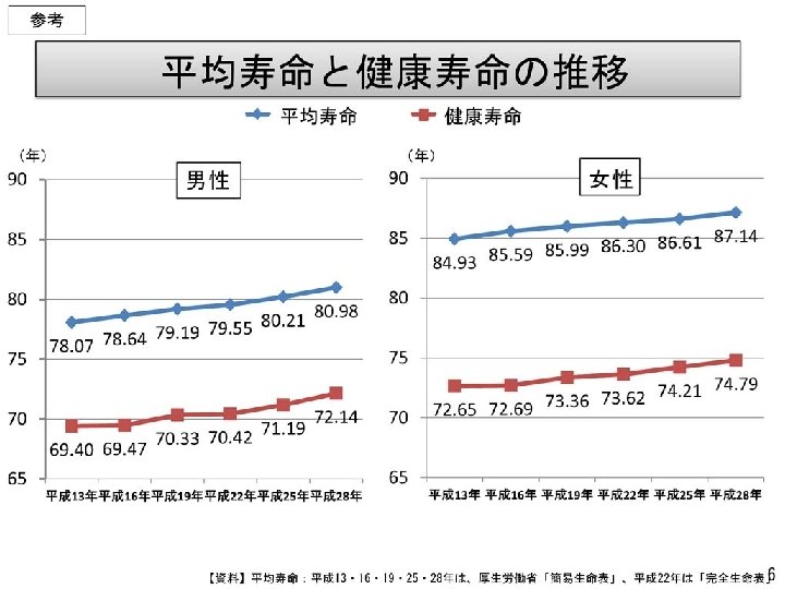 Tendances de l’espérance de vie sans incapacité, Japon, 1995 -2016 Source: Ojima et al