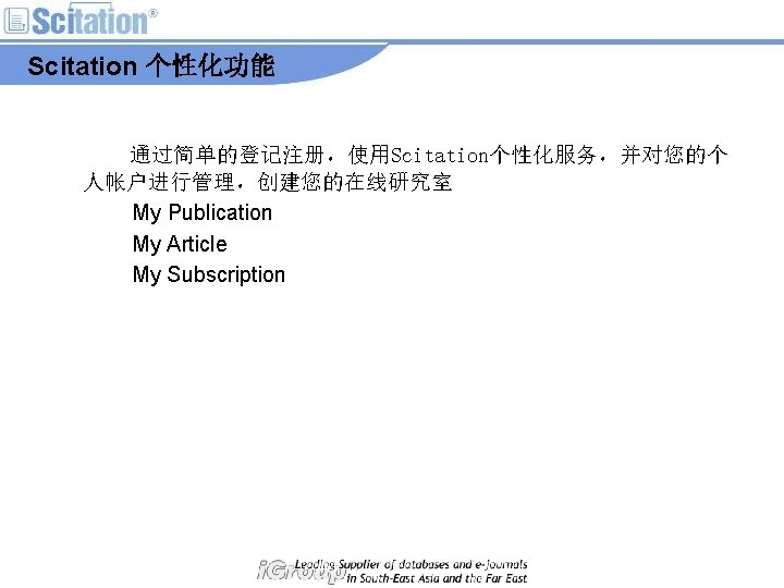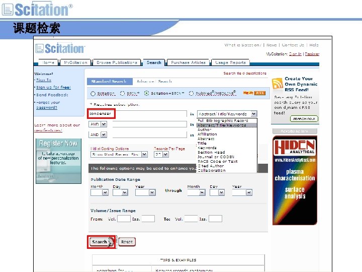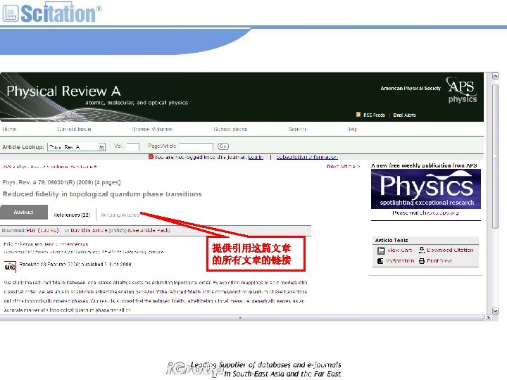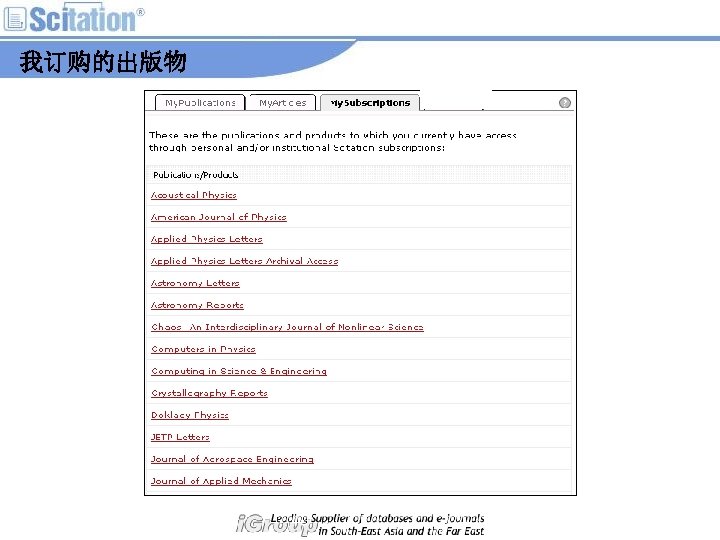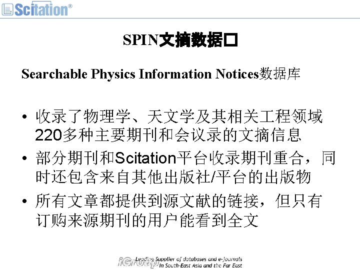 Scitation平台主页:http: //www. scitation. org 可选择在 Scitation、 SPIN、 Pub. Med/M EDLINE、 Scitopia数 据库中检索