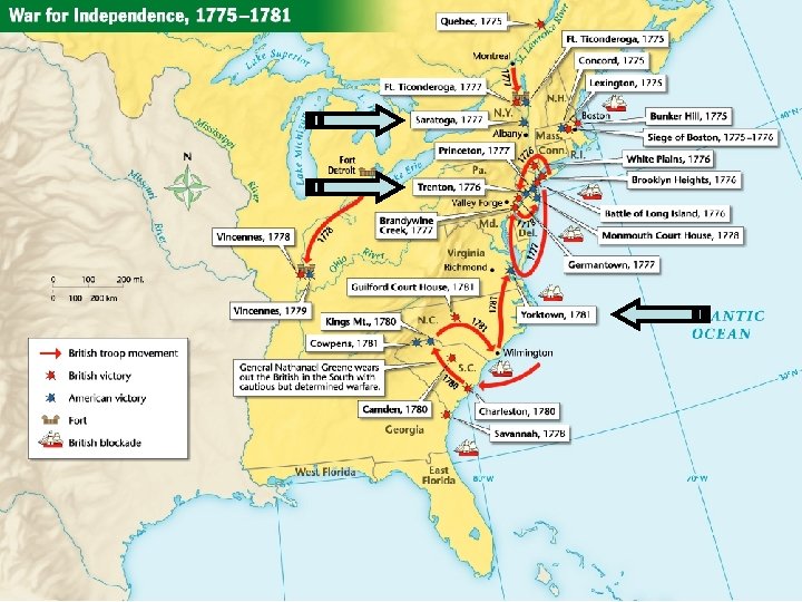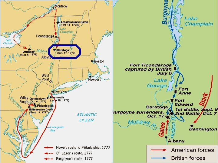 The Americans Guerilla tactics [fight an insurgent war you don’t have to win a battle, just wear the British down] The British 1777, separate and control New England. Break the colonies in half by getting between the North and South.