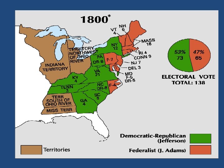 • Jefferson vs. Burr (& Adams) – Same number of electoral votes in the election – This election would lead to passage of the 12 th Amendment – Jefferson wins close vote in house to become third President- Hamilton makes it happen • (sees Jefferson as lesser evil than Burr)