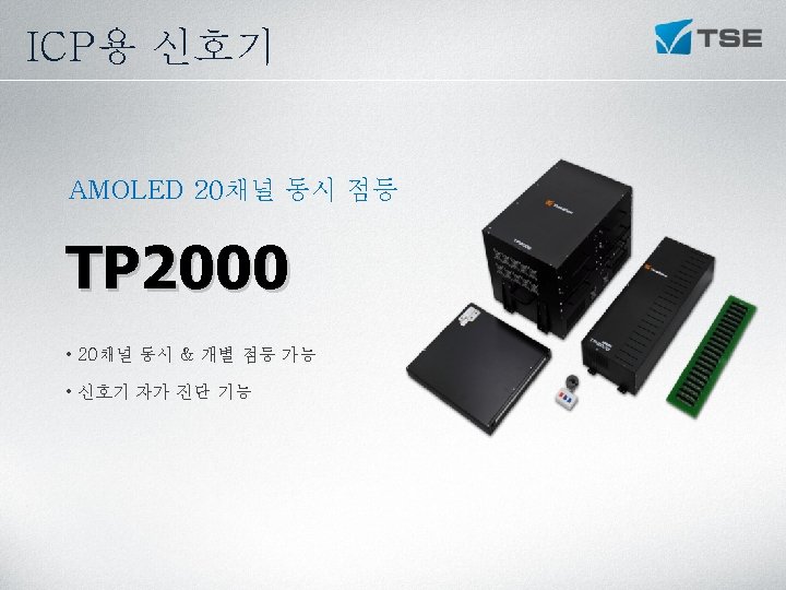 Display/OLED제품 • 20채널 동시 & 개별 점등 가능 • 신호기 자가 진단 기능 ◆In Chamber Probing Probe Card◆ - OLED 중소형 원장 Glass의 화질 검사 - 기존 대비 30% 수준의 Low Force 구현 (0. 45 g/mil ) - Particle 발생 최소화 및 Contact 저항 안정화 Array Tester OLED Ellipsometer / ICE AMOLED ICP용 신호기(20 Ch. ) AMOLED ICP용 Probe Unit(20 Ch. ) • OS 검사 가능 • Pin to Pin 검사 가능 • 전류 측정 가능 AVT 신호기 Aging Systm Vehicle Sys’, ODM LCD Stewart Robot AMOLED TFT 검사 장비