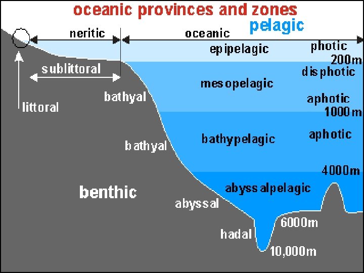 Mesopelagic Zone http: //oceanlink. island. net/oinfo/deepsea/meso. html "twilight zone" of the ocean photic zone above darkness below food becomes scarce – some animals migrate up to the surface at night to feed rely on food that falls down from above eat each other l sometimes the only things to eat may be bigger than the hunter • developed long sharp teeth, • expandable jaws and stomachs
