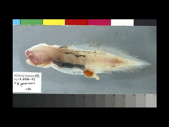 1. 2. 3. 4. 5. 6. 7. 8. 9. 10. 11. 12. 13. 14. 15. 16. 17. 18. 19. 20. 21. 22. 23. Ballina Angelfish Beaked Salmon A deepsea anglerfish (no common name) Duckbilled Eel A fanfin anglerfish Fangtooth Gilbert's Halosaur Gulper Eel Hammerjaw Largescale New Laternfish Longray Spiderfish Portuguese Dogfish Sharpnose Sevengill Shark Short-tail Torpedo Ray Silver Lighthouse Fish A snaggletooth (no common name) Snubnosed Eel Southern Spineback Sparkling Slickhead Spiky Oreo Stoplight Loosejaw Triplewart Seadevil Viperfish http: //www. amonline. net. au/fishes/about/fieldwork/norfanz/