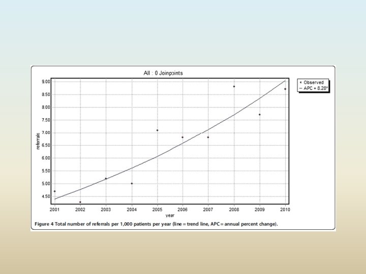 • Toplam sevk sayısı 2001 yılında ‰ 4. 7’den 2010 yılında ‰ 8. 7’ye yükselmiştir. • Yıllık % 8. 3'lük bir artış saptanmıştır. (p <0. 01)
