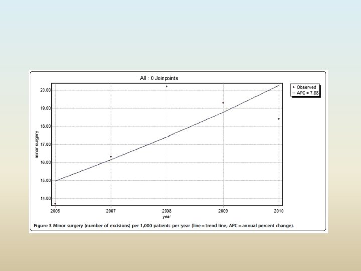 • Minör cerrahi yapılan toplam hasta sayısı, 2006 yılında ‰ 13. 7’den 2010 yılında ‰ 18. 4’e yükselerek yıllık %7. 9 artış göstermiştir. (p=0. 13)