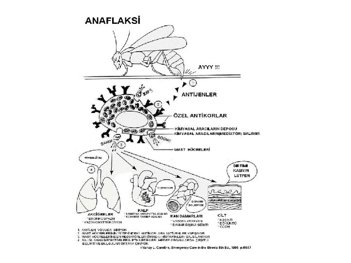 Toksik reaksiyonlar § Venomda bulunan vazoaktif ve enzimatik maddelerin oluşturduğu non-immünolojik reaksiyonlardır § Aynı anda 50 -100 arının sokmasıyla oluşurlar § Kliniği anafilaksiden ayırt edilemez § Deri testi pozitif bulunabilir