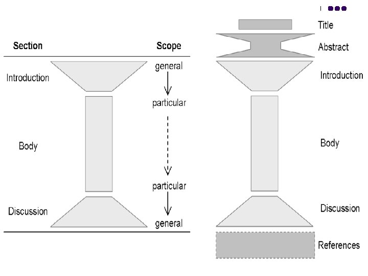 l Araştırma raporunun bölümlerinin tanımlanmasında kum saati ve kral modeli kullanılabilmektedir. l Bu modellerden yola çıkarak, tüm araştırma raporlarında genellikle olması gereken bölümler şunlardır; başlık, özet, giriş, ana metin, bulgular, tartışma ve kaynaklar.