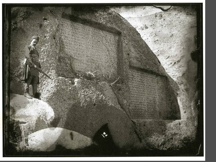 Many languages Persian king Darius I’s monumental tri-lingual inscription at the site of Bisutun, Iran in Old Persian, Elamite, Akkadian Deciphering cuneiform writing Henry Rawlinson (1810 -1895): cadet in British East India Company