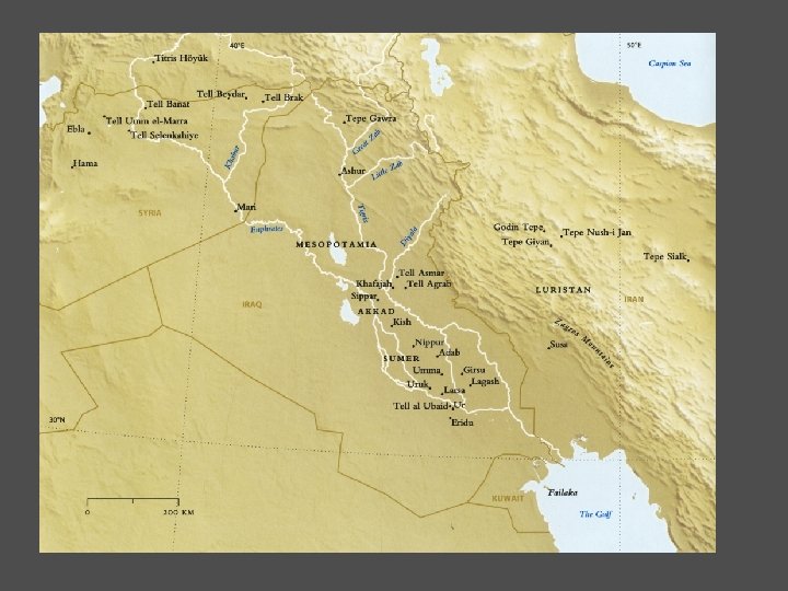 archaeological time 5000 -4000 BC Halaf period in the Northern Mesopotamia Ubaid period in the South Eridu temple sequence (E-abzu) 4000 -3500 -3100 Early Uruk period Late Uruk period Uruk Level IV (Eanna Precinct) social complexity, urbanization, writing, mass-produced pottery potter’s wheel introduced, new bureaucratic tools such as cylinder seals, longdistance trade 3100 -2900 Jemdet Nasr period Uruk Level III (Eanna Precinct) 2950 -2750 -2600 -2350 Early Dynastic III Protoliterate Period Pre-Sargonic Period