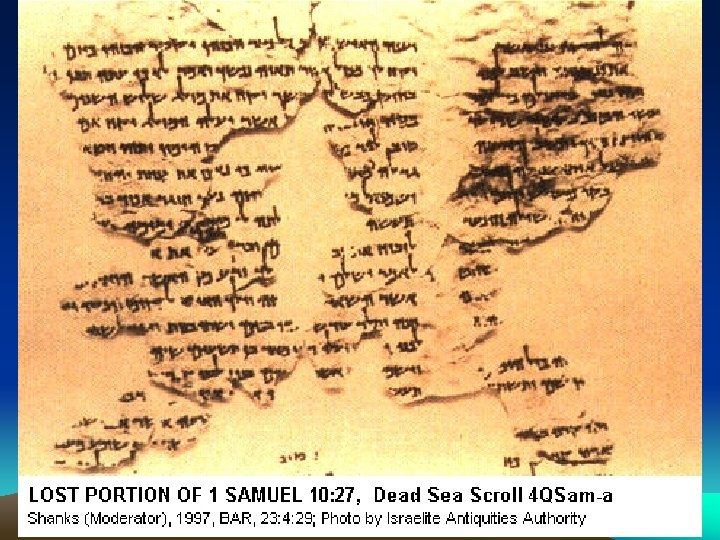 RECOVERED PORTION OF BOOK OF SAMUEL • The Masoritic text is missing some information in the text of 4 QSAM found among the Dead Sea Scrolls