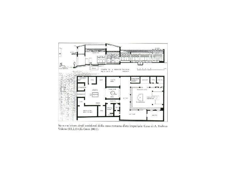 Valenze sociali della casa romana Vitruvio VI, 5, 1 -2 I i 4 tipi di atrio: tuscanico, corinzio, tetrastilo, displuviato, testudinato Vitruvio VI, 3, 1 -2 Triclini autunnali e triclini estivi Vitruvio VI, 4, 2