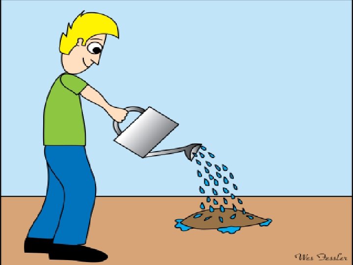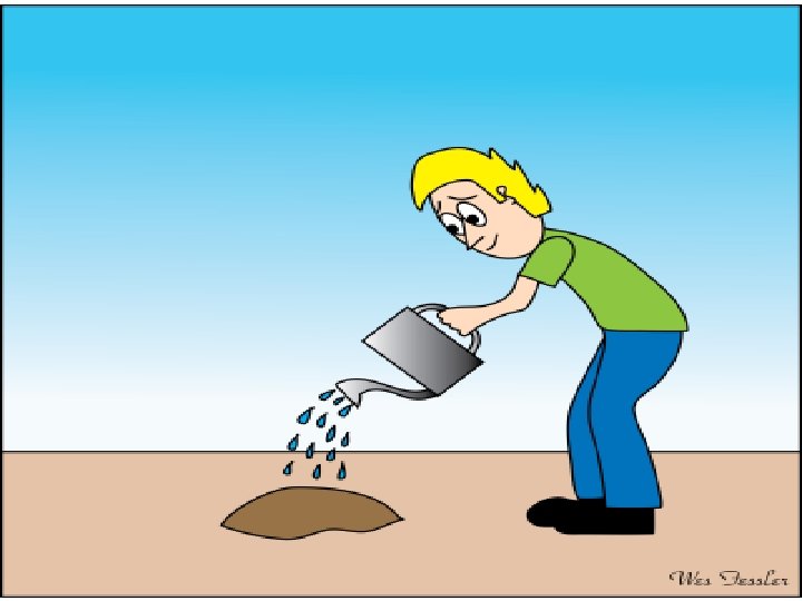 Water to grow • He brought water each day in a watering can. He did his very best to make good on his plan. Every day, he returned with the hope he would see a small sign of new growth from the seed to a tree.