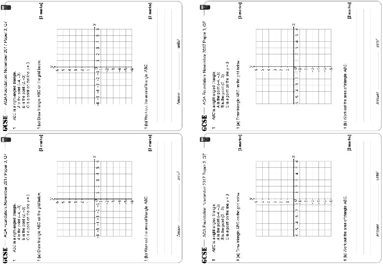 AQA Foundation: November 2017 Paper 3, Q 7 1 1 1 (a) Draw triangle ABC on the grid below. [3 marks] 1 (b) Work out the area of triangle ABC. Answer [2 marks] units 2