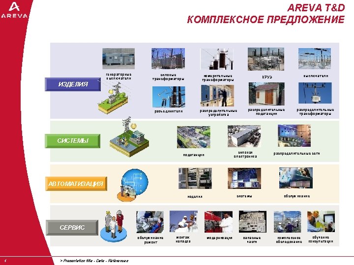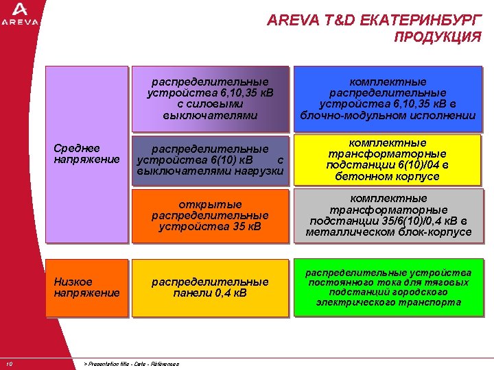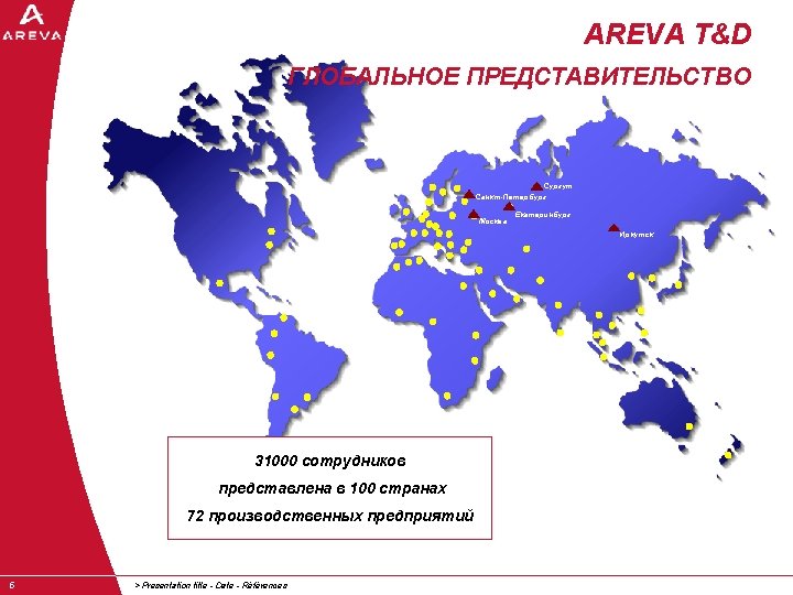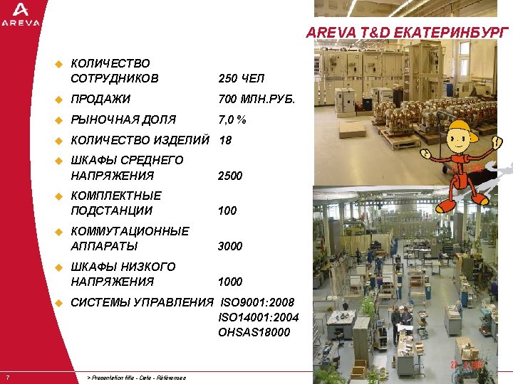 AREVA T&D ЕКАТЕРИНБУРГ - ИСТОРИЯ 1942 Свердловский ЭМЗ 1994 1997 ALSTOM 2004 AREVA T&D ЕКАТЕРИНБУРГ 6 > Presentation title - Date - Références