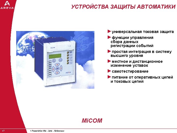 PIX 17 СЕРИЯ ЯЧЕЕК СРЕДНЕГО НАПРЯЖЕНИЯ 12 > Presentation title - Date - Références