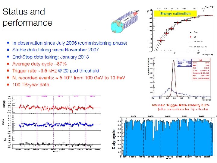 EAS reconstruction by digital readout Data taking with full configuration: November 2007 - February 2013 Event Rate ~ 3. 5 k. Hz for Nhit ≥ 20 - Duty cycle ~ 86% - 1011 evts/yr duty-cycle 86 % Space/time granularity + full coverage + high altitude Number of fired Strips event imaging and EAS space/time structure study with unprecedented details NOW-2014 A. Surdo: Measurement of CR energy spectra with ARGO-YBJ