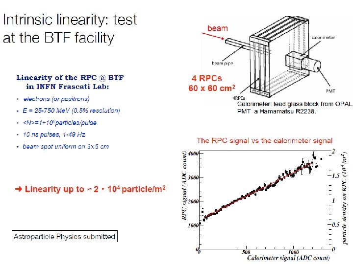 The analog readout system ARGO-YBJ Eight gain scales (G 0, G 1, … G 7) ensure good linearity up to about 2 x 104 particles/m 2 G 7 data overlap the digital-mode linearity range, and have been used for intercalibration and cross checks Np 8 = part how m any 8 m icles w from ithin the core (LDF) Here we use G 4 and G 1 scales to cover the 50 Te. V – 5 Pe. V range with high efficiency and without saturation G 1 scale G 4 scale 5 x 104 < Np 8 < 105 5 x 103 < Np 8 < 104 Linearity range Lateral Distribution Function Sensitivity threshold