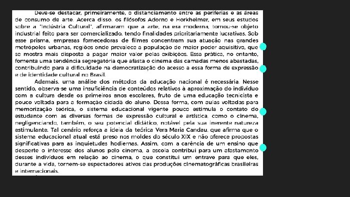 O que isso quer dizer Interpretar Relacionar Estratégias de antecipação e retomadas Condução do leitor Ordens de importância e hierarquia Desenvolvimento de informações, que se desencadeiam em outras - progressão Senso crítico Inserção do ponto de vista Contextualizações Produtividade de repertório Coerência de ideias SELECIONAR RELACIONAR ORGANIZAR INTERPRETAR