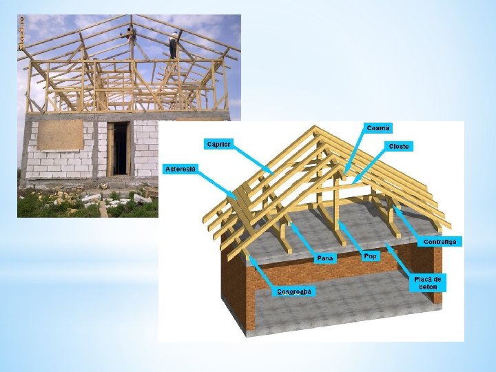 LUCRU PRACTIC: Să construim un acoperiș prin instalarea Căpriorilor și cleștelor. Măsurăm, confecționăm linia mijlocie a unui triunghi care reprezintă o secțiune din acoperiș, apoi o instalăm pe o casă modelată. În final se va obține un acoperiș.