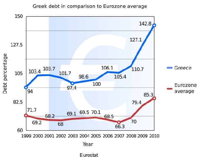 GREECE 2010 l Public Debt: 142, 8% of GDP – € 350 billion ($ 500 billion) l Public Deficit: 15. 4% of GDP l “Growth”: -4. 5% of GDP