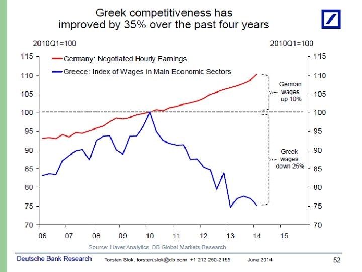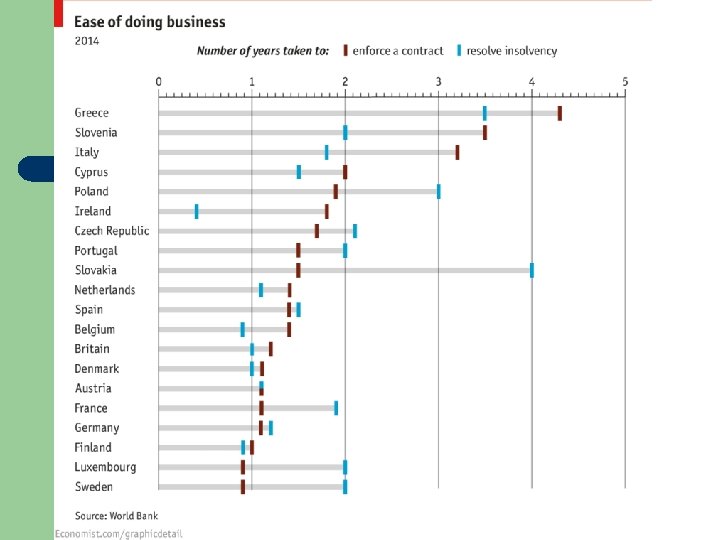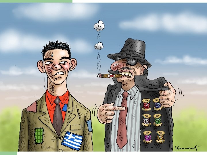 The Greek trap l l l l A bloated inefficient “welfare state” but also Tax evasion (as a social right) A huge inefficient public sector Corruption – essentially tolerated if not decriminalized Public sector union power Closed professions Overregulation to ensure rent-seeking “A state made for the welfare of politically powerful pressure groups”