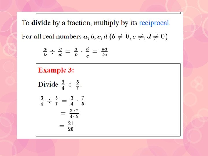 Identity Property for Fraction Addition and Multiplication Inverse Property for Fraction Multiplication Distributive Property of Multiplication over Addition for Fraction or Subtraction