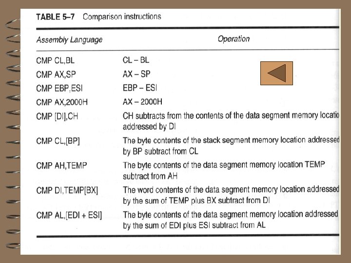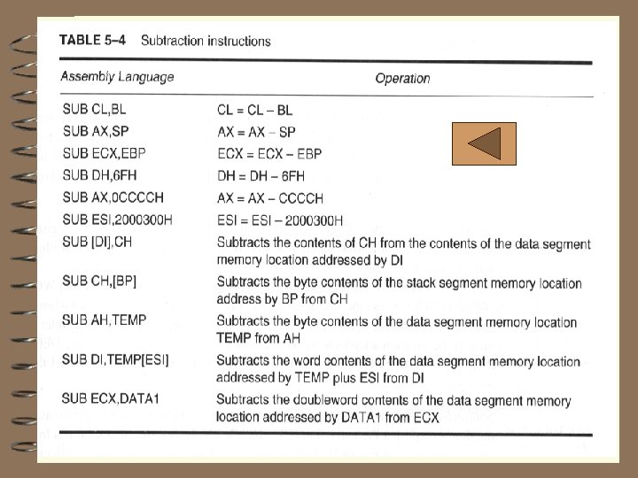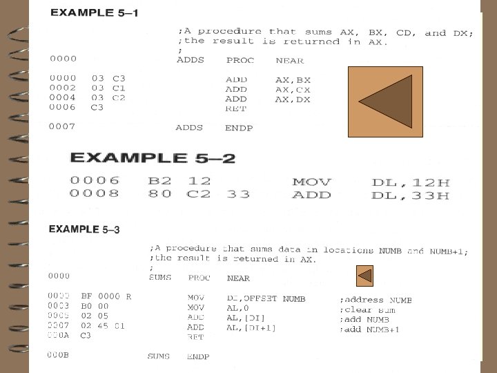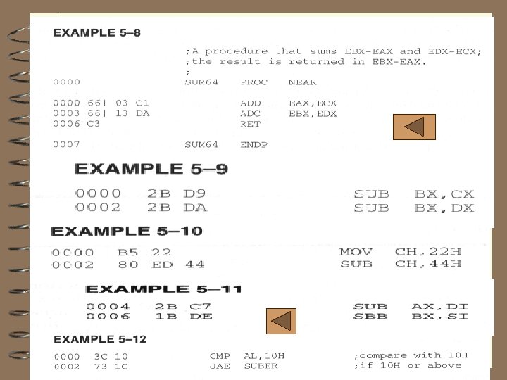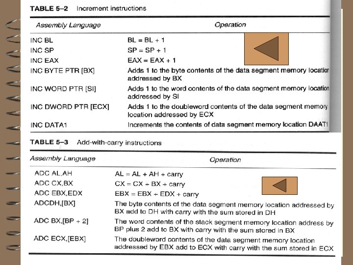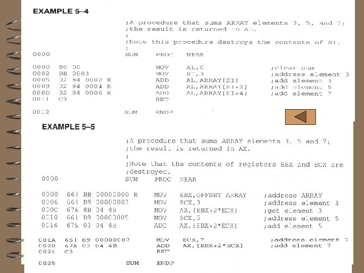 Addition-Subtraction-Comparison (cont’d) – Memory-to-Register Addition • Example 5. 3 adds two consecutive bytes of data – Array Addition • Example 5. 4 shows a procedure that adds the contents of array elements 3, 5, and 7 • Example 5. 5 shows the scaled-index form of addressing to add elements 3, 5, and 7 of an area of memory called ARRAY – Increment Addition • Examples 5. 6 modifies example 5. 3 to use the increment instruction for addressing NUMB and NUMB+1 (see also Table 5. 2)