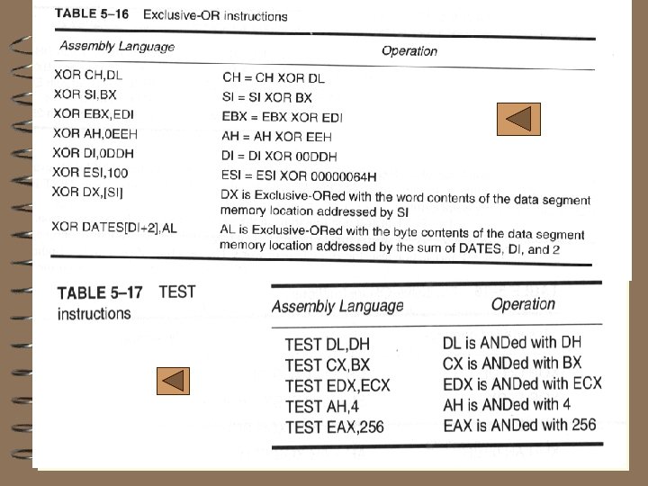 Basic Logic Instruction 1. Logic operations provide binary bit control in low-level software; allow bits to be set, cleared, or complemented 4 AND • Performs logical multiplication as depicted by the truth table in Fig. 5. 3 and Fig. 5. 4 • See also Ex. 5. 26 and Table 5. 14 4 OR • Performs logical addition as depicted in Fig. 5. 5 and Ex. 5. 27 and Fig. 5. 6 and Table 5. 15 4 X-OR • Study Fig. 5. 7, Table 5. 16 and Ex 5. 28
