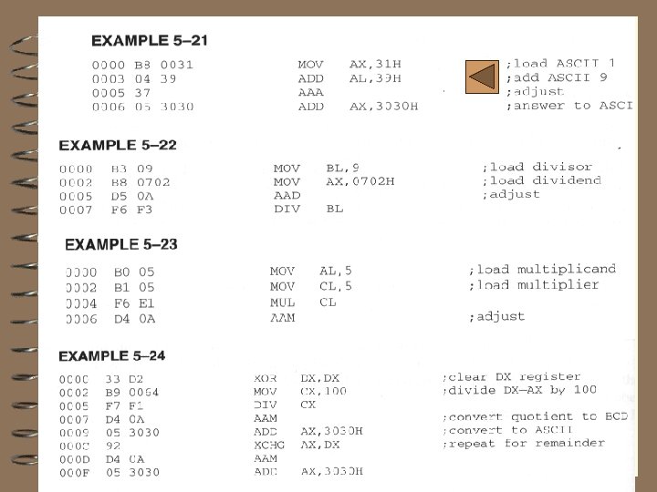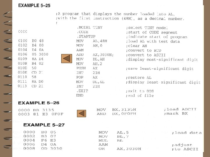 BCD and ASCII Arithmetic (cont’d) 4 ASCII Arithmetic – AAA (ASCII Adjust After Addition) • Example 5. 21 – AAD (ASCII Adjust Before Division) • Example 5. 22 – AAM (ASCII Adjust After Multiplication) • Example 5. 23, Example 5. 24, Example 5. 25 – AAS (ASCII Adjust After Subtraction) • Adjust the AX register after an ASCII subtraction