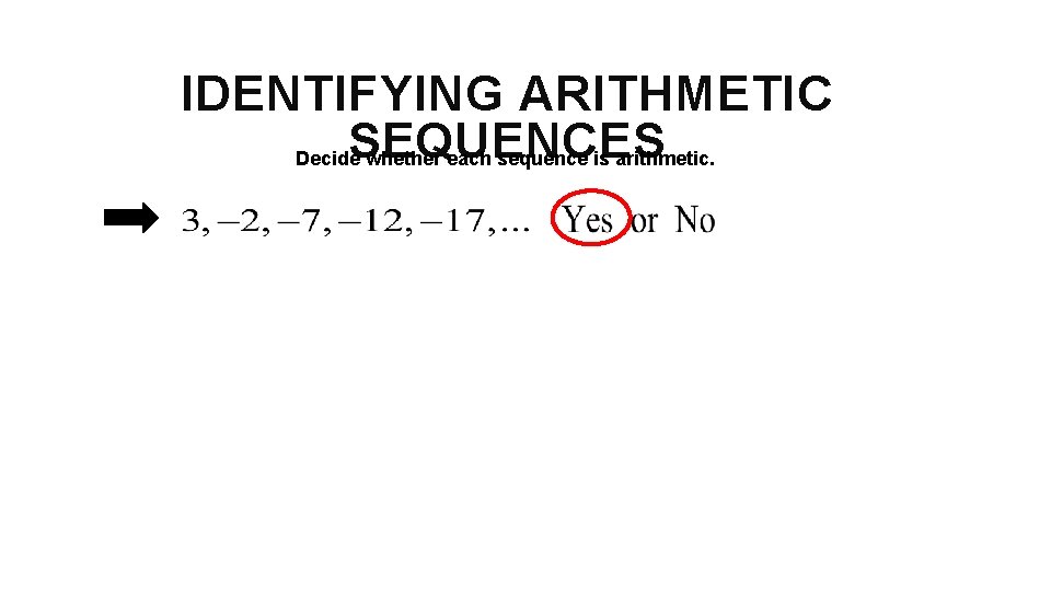 IDENTIFYING ARITHMETIC SEQUENCES Decide whether each sequence is arithmetic.