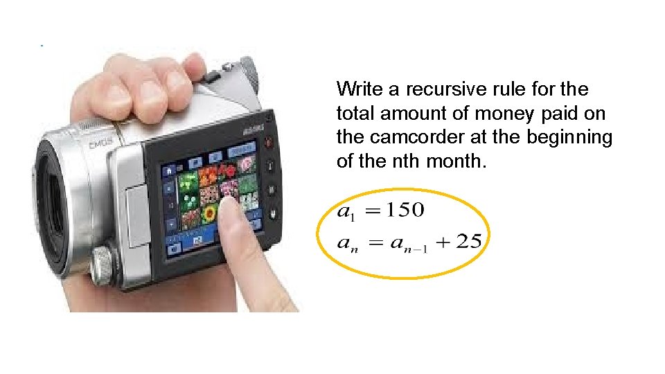 Write a recursive rule for the total amount of money paid on the camcorder at the beginning of the nth month.