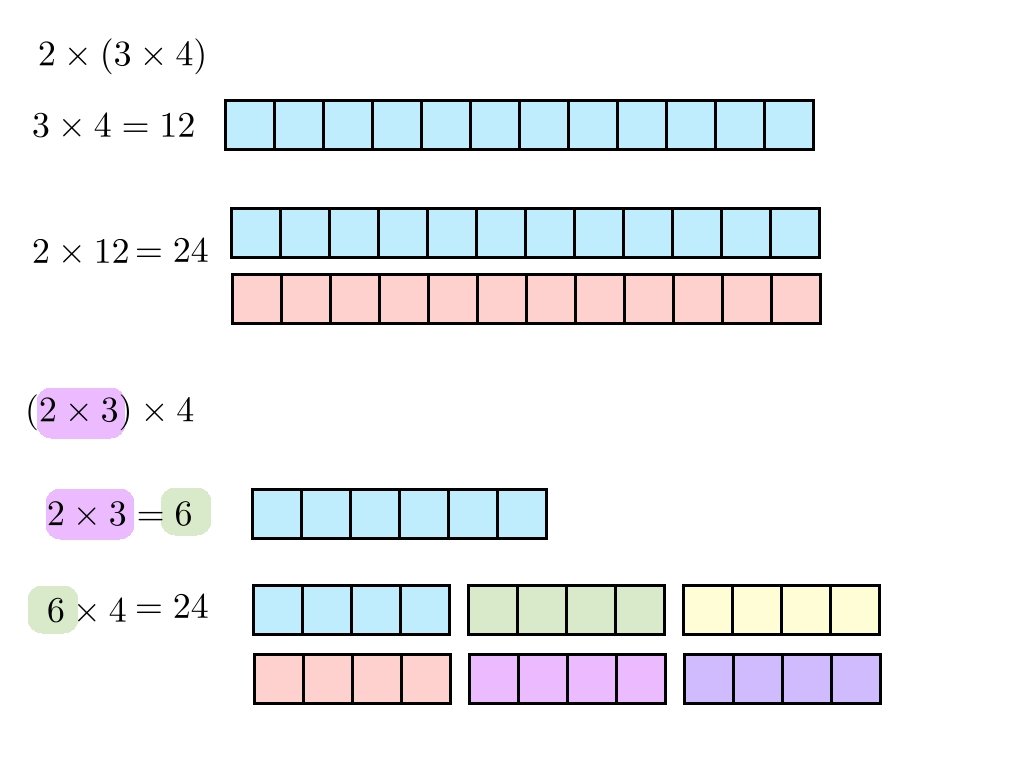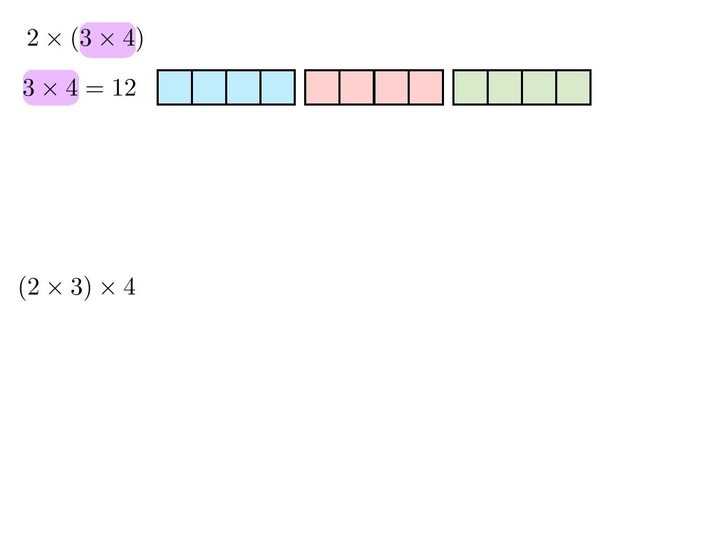 Comment gérer plus d’une multiplication? Est-ce que ça veut dire 2 paquets de 3 paquet de 4 ou bien 2 paquets de 3 de paquet de 4 Dans un cas comme dans l’autre, on doit faire une multiplication à la fois