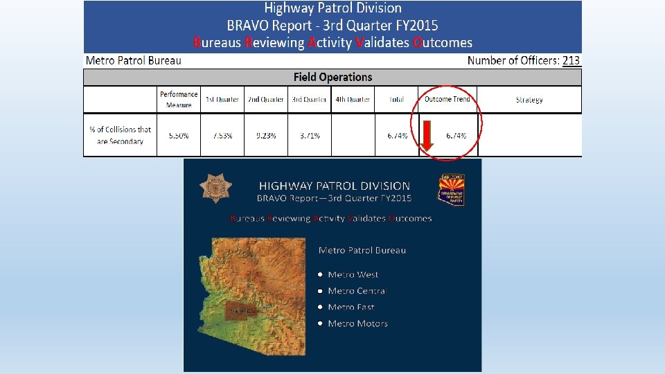 Crash Reduction • DPS troopers investigated 29, 725 crashes and 241 fatal crashes, on average, every year over the last several years • National average is 20% of crashes are secondary • 20% of 29, 725 = 5, 945 crashes (1893 actual in 2014) • Arizona’s rate of 6. 36% potentially saved 4052 crashes • Nationally 18% of all fatal crashes are secondary • 18% of 241 = 43 fatal crashes (5 actual in 2014) • Arizona’s rate of 2. 1% (fatals) potentially saved 38 fatal crashes